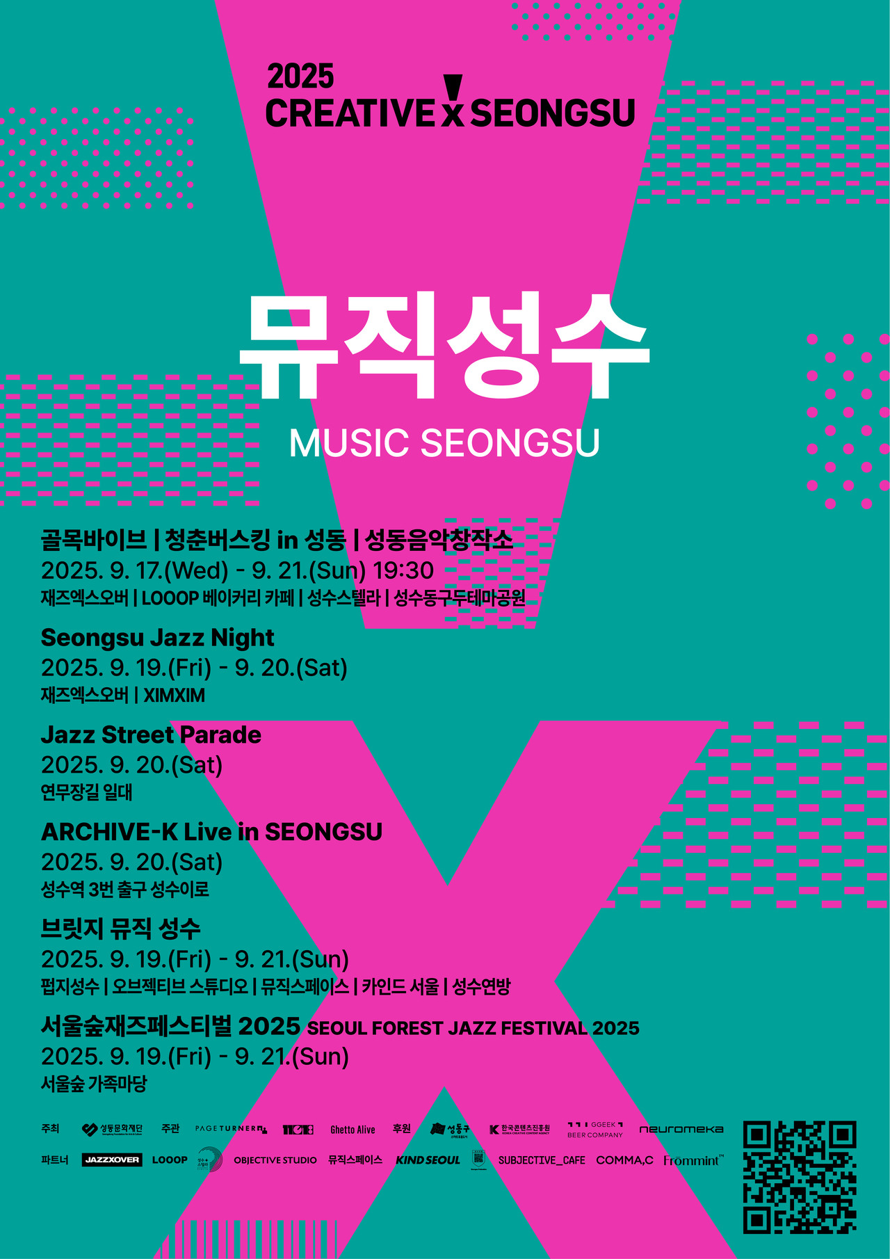 파 트 너 : 재즈엑스오버, LOOOP베이커리카페, 성수스텔라, 오브젝티브 스튜디오, 뮤직스페이스. 카인드 서울, 성수연방, 서브젝티브 스튜디오, 콤마씨, 프롬민트